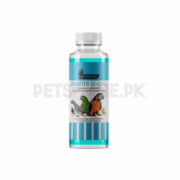 Order Birdie D-CAL – 100ml now from Petsone.pk and help your feathered friend stay strong, healthy, and happy. Fast nationwide delivery available!