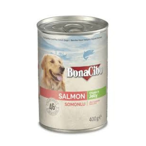 Buy Bonacibo Wet Food for Dogs in Can – Salmon Chunks in Jelly online in Pakistan at PetsOne.pk and treat your furry friend to a tasty, healthy meal every day.