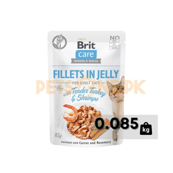 Brit Care Wet Food Pouch / For Cats / Fillets In Jelly / Turkey And Shrimps Flavor – 85 Gram