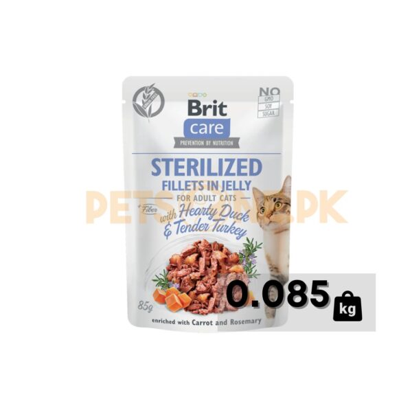 Brit Care Wet Food Pouch / For Sterilized Neutered Cats / Fillets In Jelly / Duck And Tender Turkey – 85 Gram
