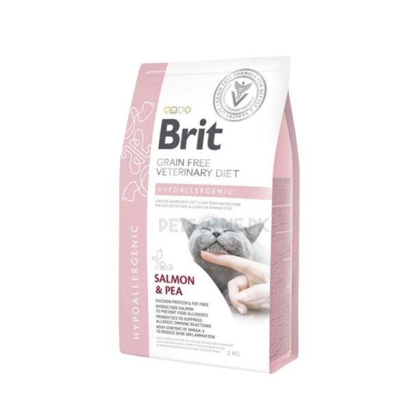 Brit Veterinary Diet Hypoallergenic Cat Food is a specially formulated complete dietetic feed for cats suffering from food allergies, intolerances, or dermatological and digestive sensitivities. Made with easily digestible salmon and peas, this grain-free formula helps reduce ingredient and nutrient intolerance while supporting skin, coat, and digestive health.