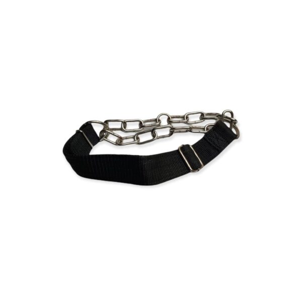 The Half Choke Collar, also known as a Martingale Collar, is designed to provide gentle and effective control for your dog without the harshness of a traditional choke chain. Made with a combination of strong nylon and metal chain, this collar tightens slightly when pulled but never closes fully, ensuring both safety and comfort.