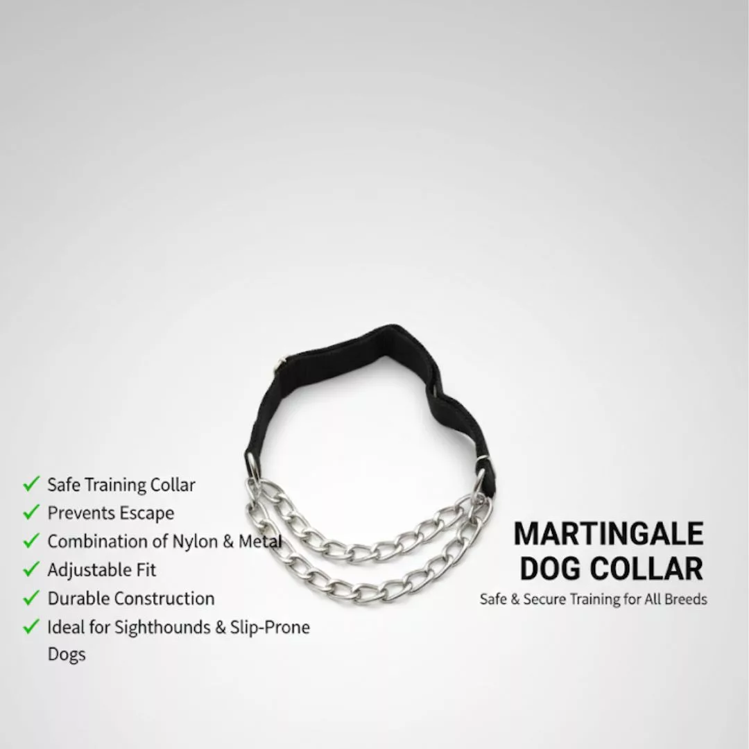 Unlike standard choke chains, the Martingale Collar applies even pressure around the neck without causing discomfort. It’s recommended by trainers and veterinarians for dogs that tend to slip out of regular collars or need controlled training support.