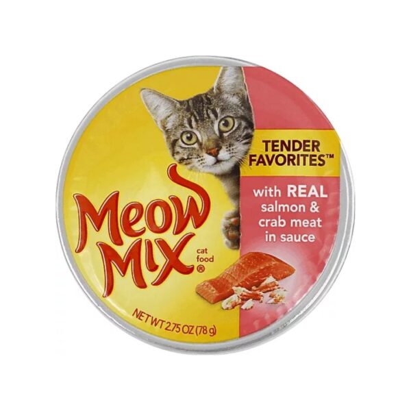Meow Mix Tender Favorites With Real Salmon & Crab Meat in Sauce