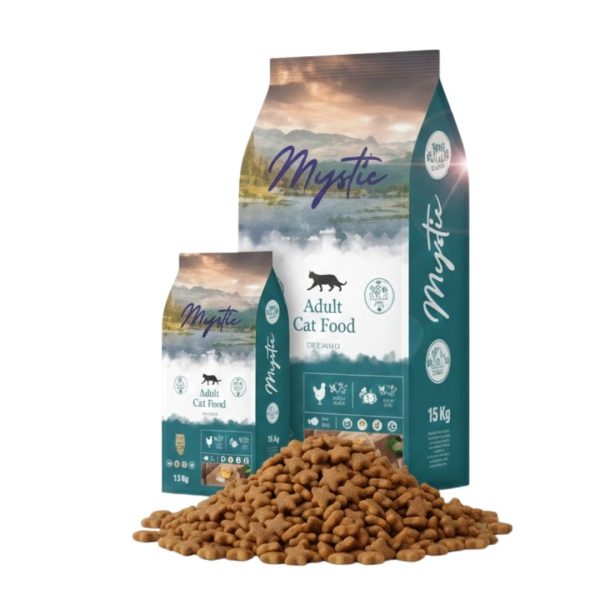 Mystic Adult Cat Food. Specially formulated for adult cats, this delicious recipe supports overall health, digestion, and vitality. With high-quality ingredients and essential nutrients, it helps keep your cat active, healthy, and satisfied every day.