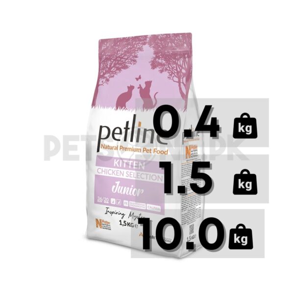 Petline Cat Food Kitten Chicken Selection supports the optimal functioning of your kitten’s metobolism with carefully selected raw materials and specially added Glucosamine, Chondroitin, Taurine and with the help of these ingredients will help maintain a healthy life.
