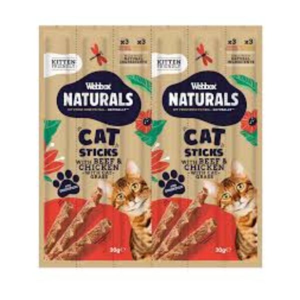 Webbox Natural Sticks Cat Treats – Beef Chicken With Cat Grass