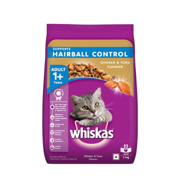 Whiskas 1+ Hairball Control Cat Food Chicken And Tuna Flavor(var #3555161), 1.1 KG Whiskas 1+ Hairball Control Cat Food Chicken And Tuna Flavor(var #3555162), 450 Gram