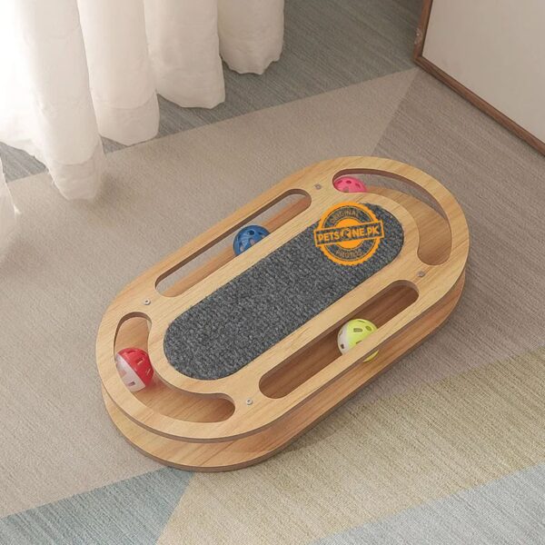 Wooden Cat Playing Track Tower Oval Shape